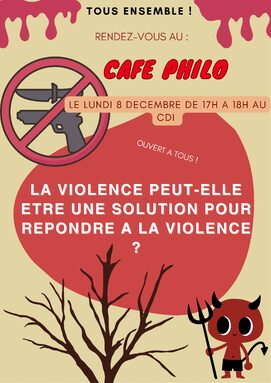 Premier thème choisi : La violence peut-elle être une solution pour répondre à la violence? Rendez-vous au CDI Lundi 8 Décembre de 17h à18h!